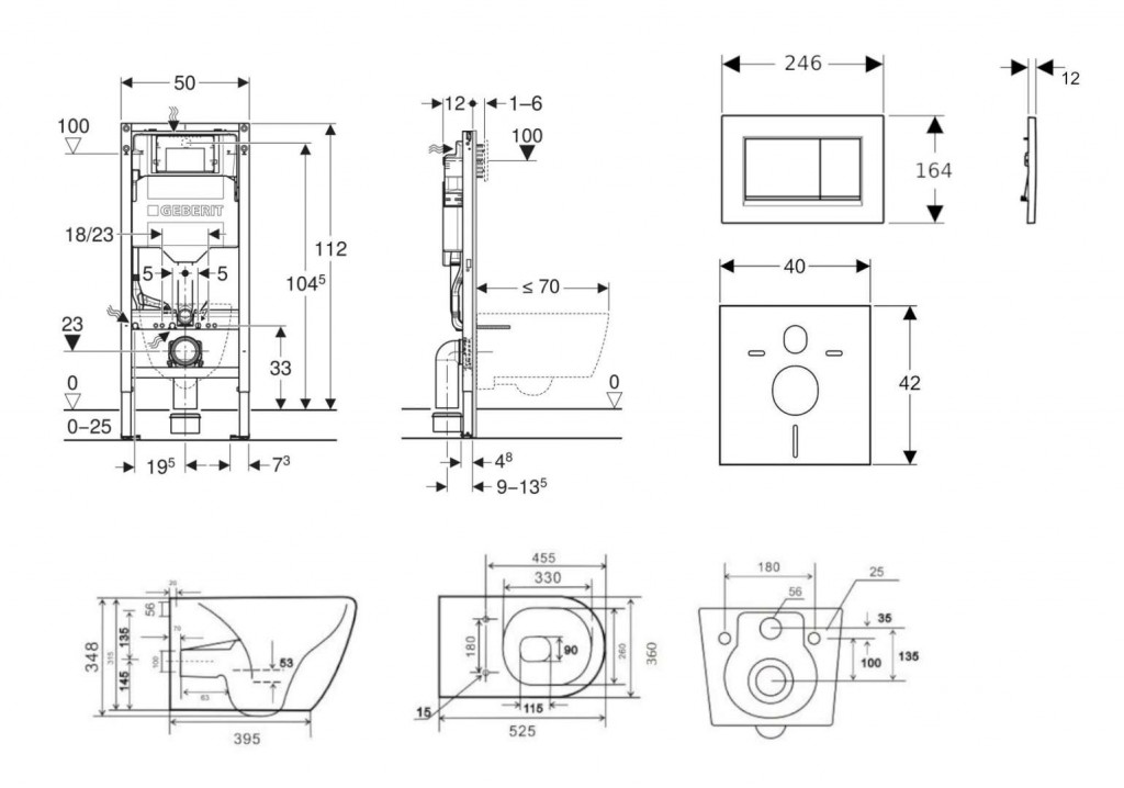 - na montáž do systémových stien Geberit Duofix čiastočne vysokých alebo vysokých na výšku miestnosti