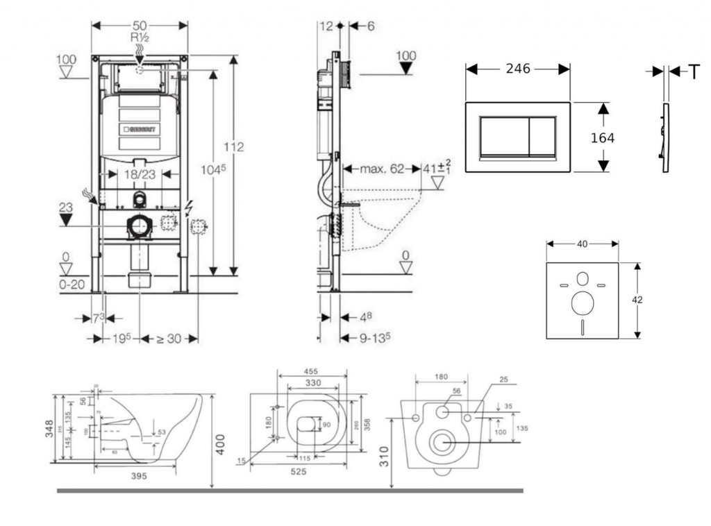 - na montáž do systémových stien Geberit Duofix čiastočne vysokých alebo vysokých na výšku miestnosti