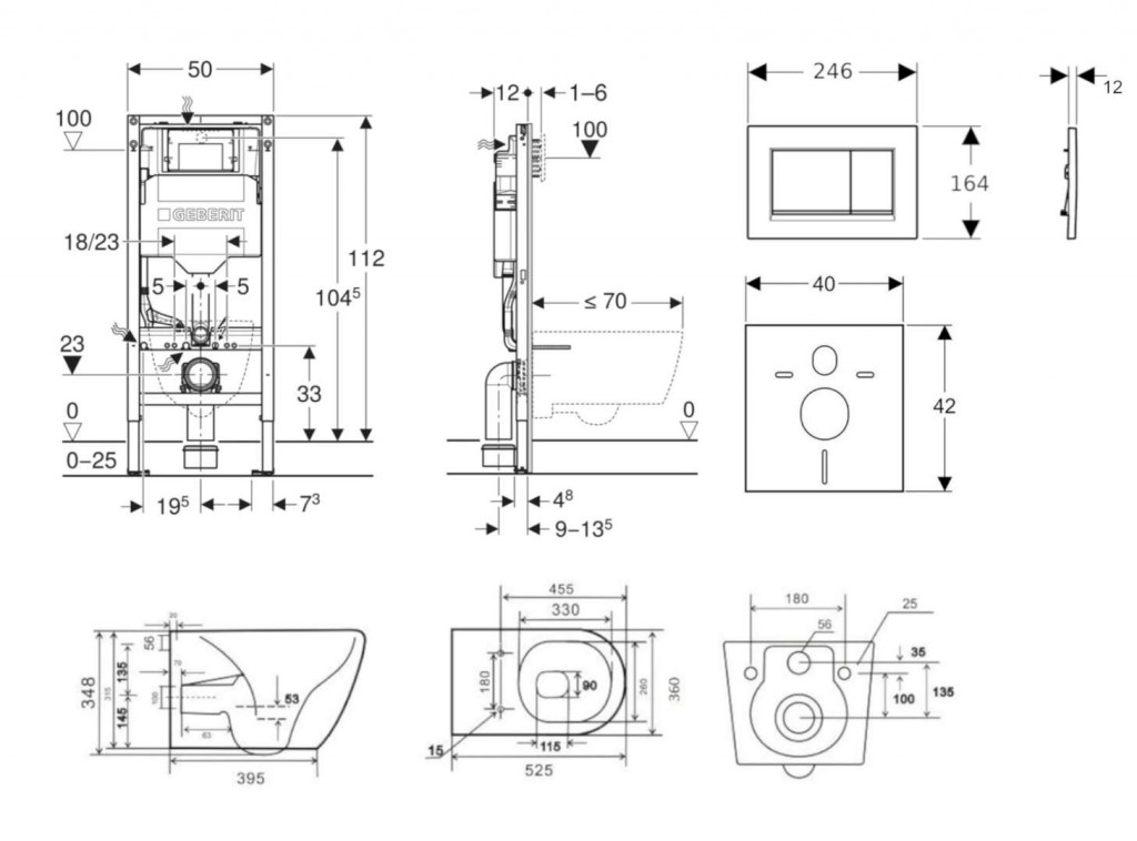 - na montáž do systémových stien Geberit Duofix čiastočne vysokých alebo vysokých na výšku miestnosti