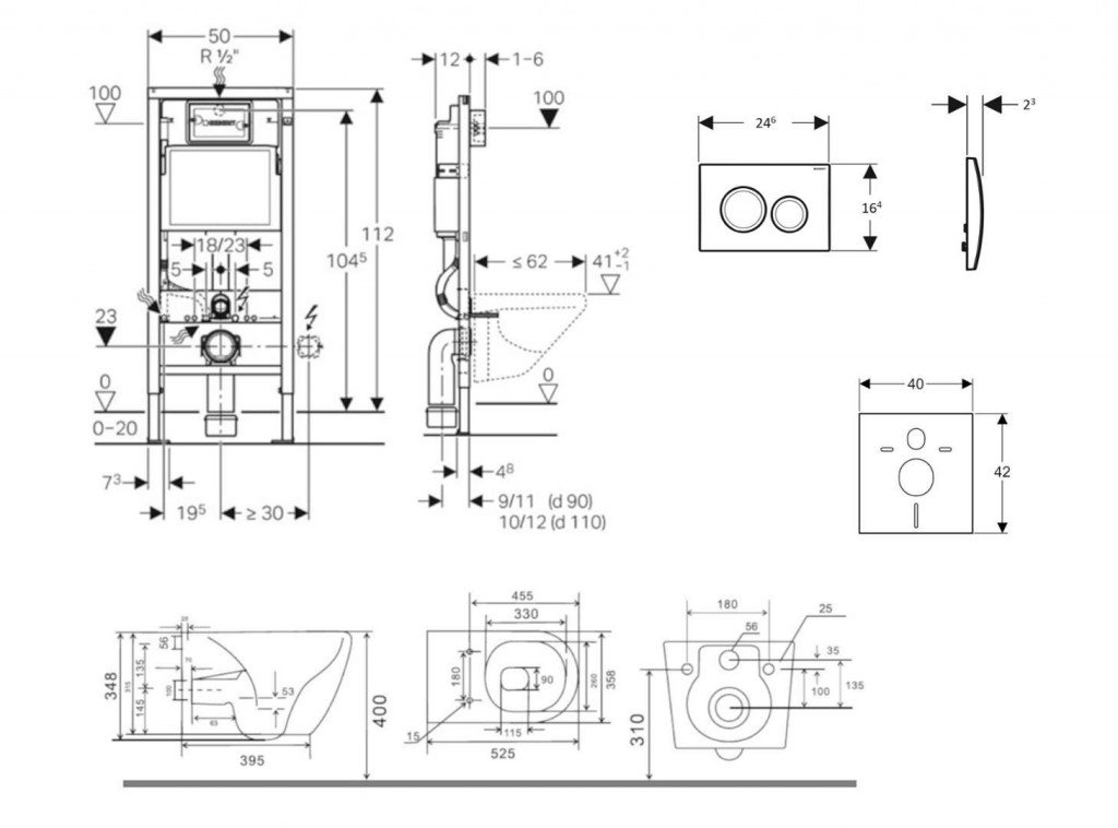 - pre montáž závesného WC so vzdialenosťou upevnenia 18 cm alebo 23 cm