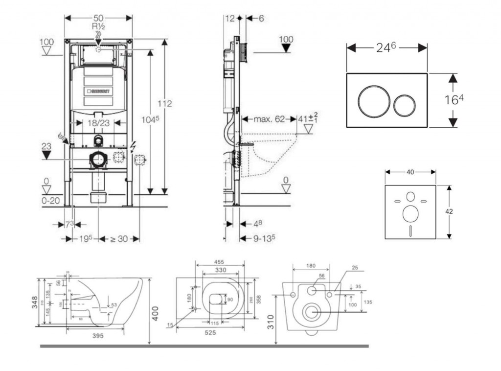 - na montáž do systémových stien Geberit Duofix čiastočne vysokých alebo vysokých na výšku miestnosti