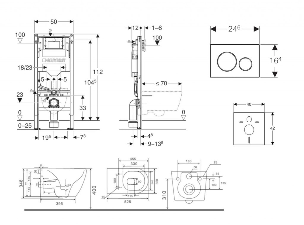- pre závesné WC s pripojovacími rozmermi podľa EN 33 a presahom do 70 cm