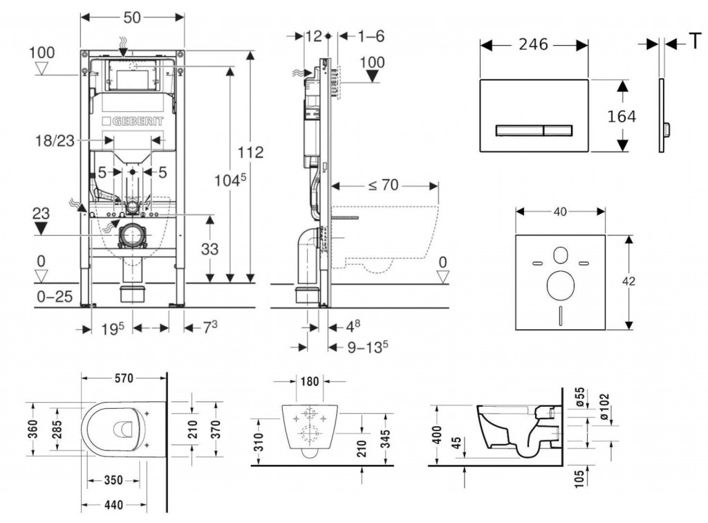 - na montáž do systémových stien Geberit Duofix čiastočne vysokých alebo vysokých na výšku miestnosti