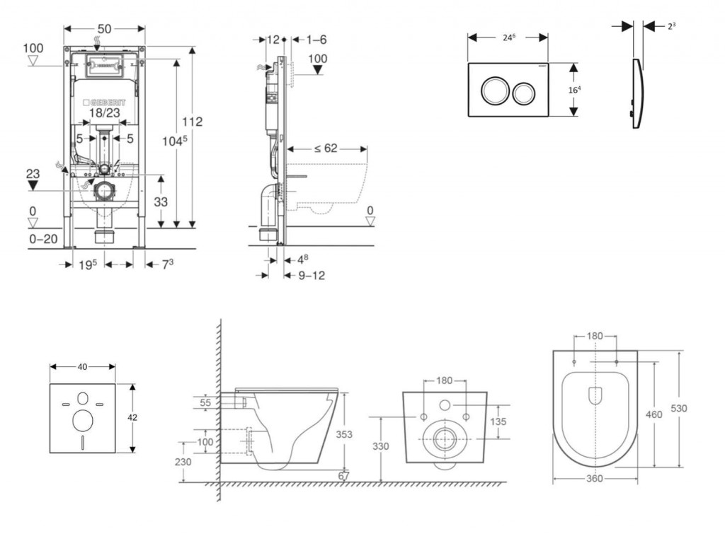 - rám pre nástenné WC s pripojovacími rozmermi podľa EN 33 a presahom do 62 cm