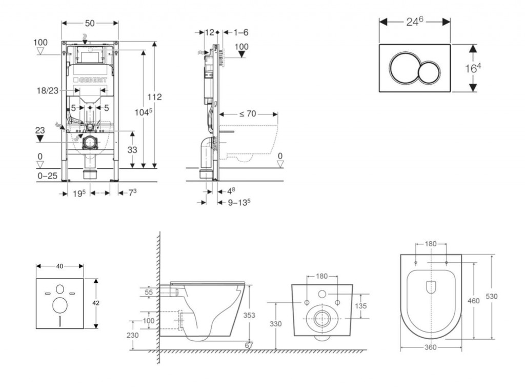 - pre závesné WC s pripojovacími rozmermi podľa EN 33 a presahom do 70 cm