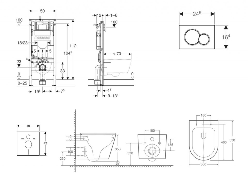 - na montáž do systémových stien Geberit Duofix čiastočne vysokých alebo vysokých na výšku miestnosti