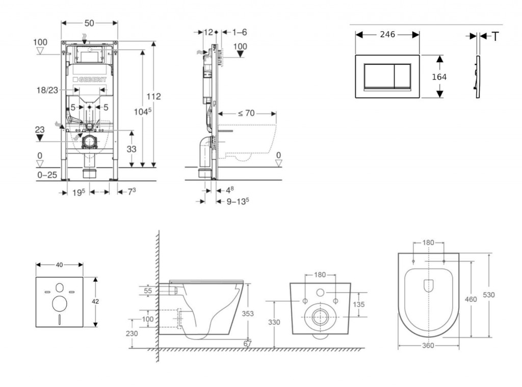 - pre závesné WC s pripojovacími rozmermi podľa EN 33 a presahom do 70 cm