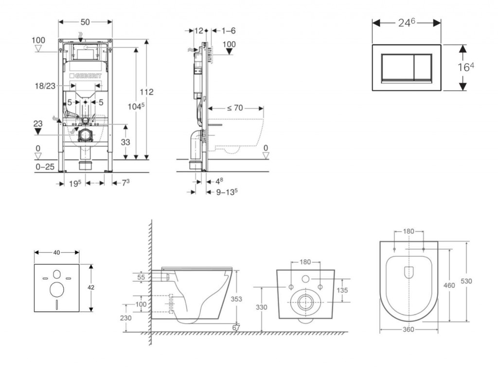 - pre závesné WC s pripojovacími rozmermi podľa EN 33 a presahom do 70 cm