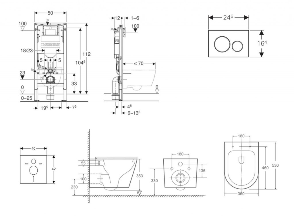 - pre závesné WC s pripojovacími rozmermi podľa EN 33 a presahom do 70 cm