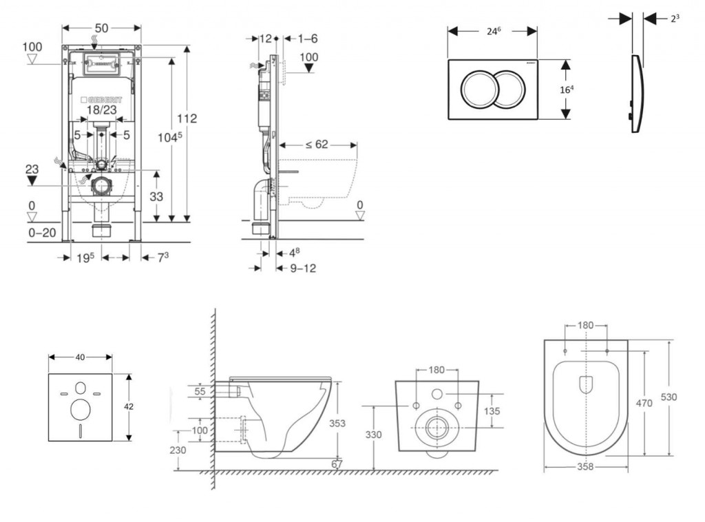 - rám pre nástenné WC s pripojovacími rozmermi podľa EN 33 a presahom do 62 cm