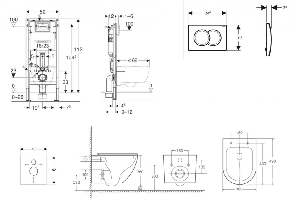 - rám pre nástenné WC s pripojovacími rozmermi podľa EN 33 a presahom do 62 cm