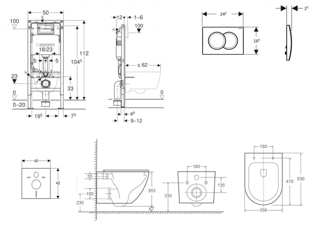 - rám pre nástenné WC s pripojovacími rozmermi podľa EN 33 a presahom do 62 cm