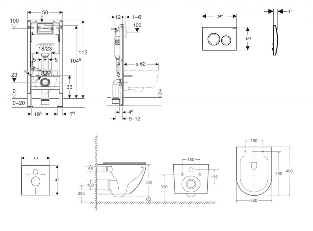 - rám pre nástenné WC s pripojovacími rozmermi podľa EN 33 a presahom do 62 cm