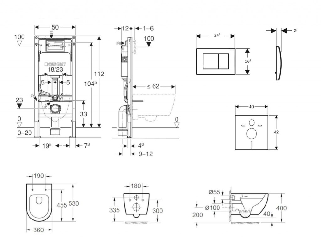 - rám pre nástenné WC s pripojovacími rozmermi podľa EN 33 a presahom do 62 cm