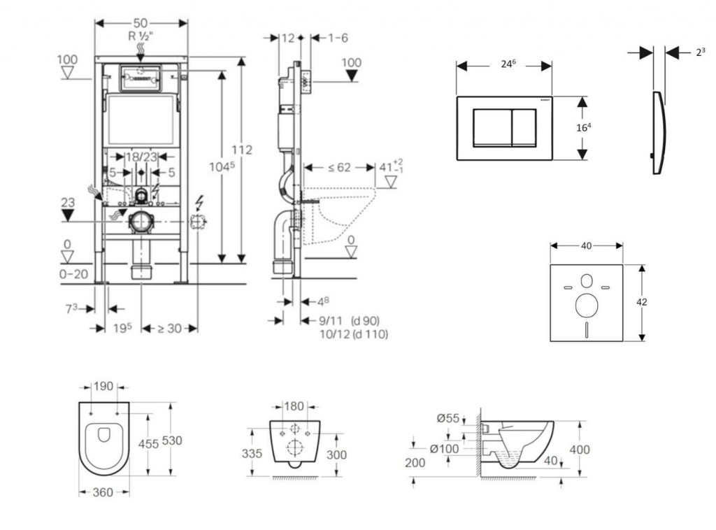 - pre montáž závesného WC so vzdialenosťou upevnenia 18 cm alebo 23 cm