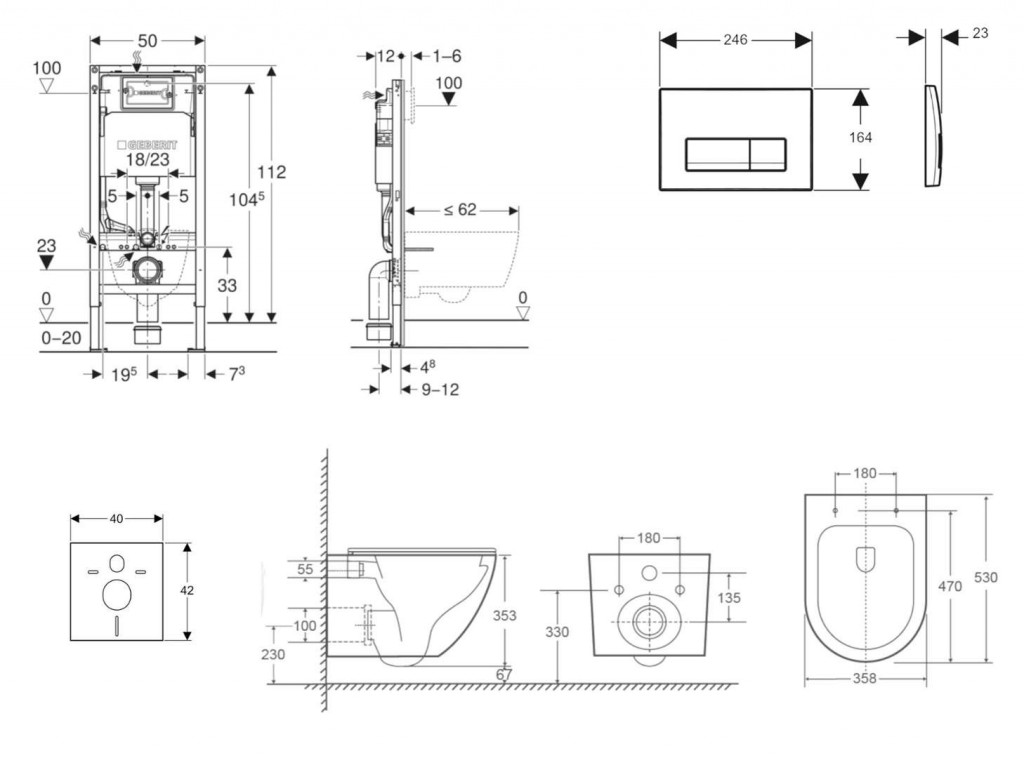 - rám pre nástenné WC s pripojovacími rozmermi podľa EN 33 a presahom do 62 cm