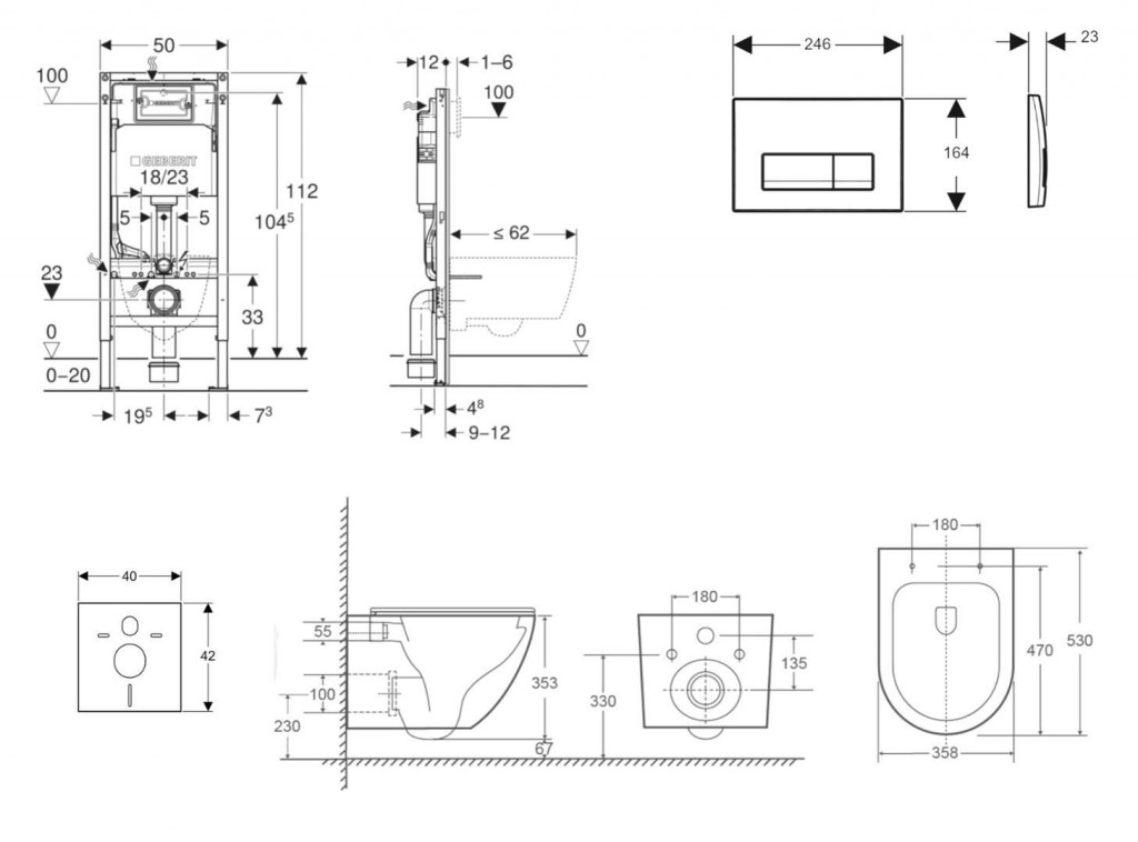 - rám pre nástenné WC s pripojovacími rozmermi podľa EN 33 a presahom do 62 cm