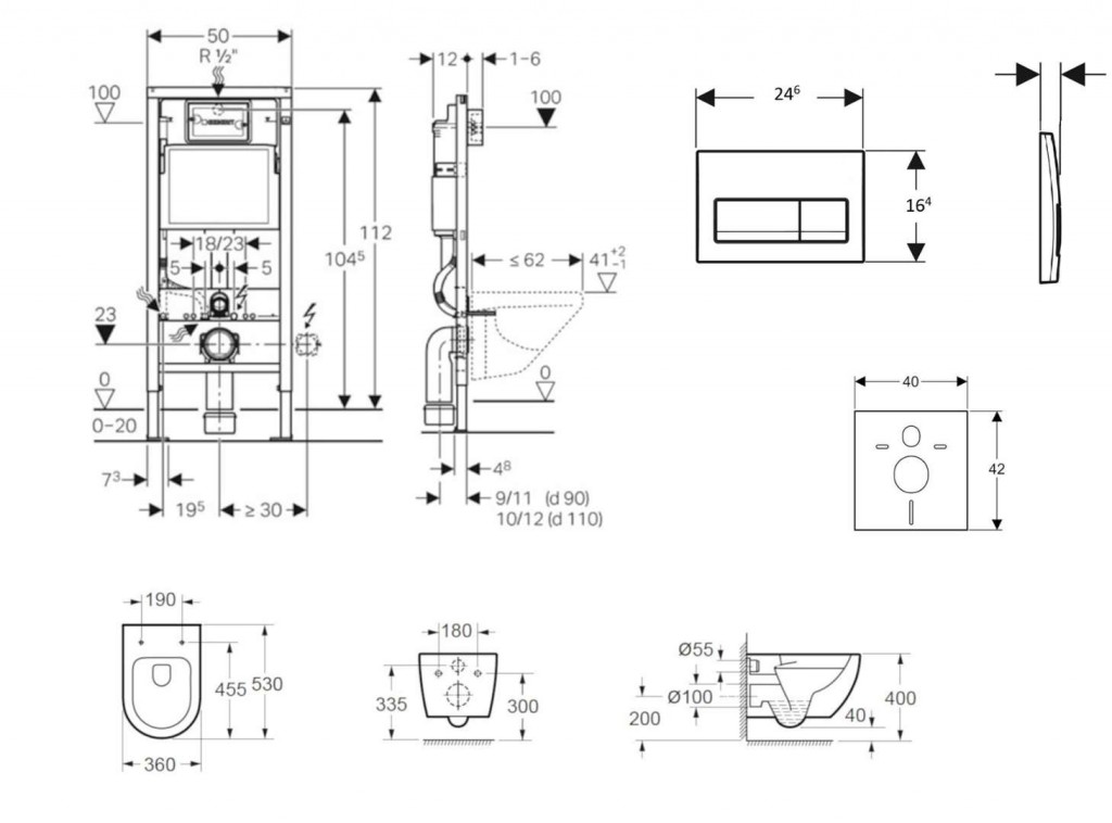 - pre montáž závesného WC so vzdialenosťou upevnenia 18 cm alebo 23 cm