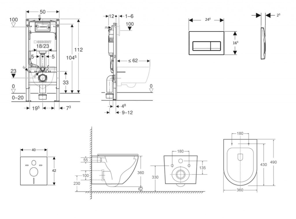 - rám pre nástenné WC s pripojovacími rozmermi podľa EN 33 a presahom do 62 cm