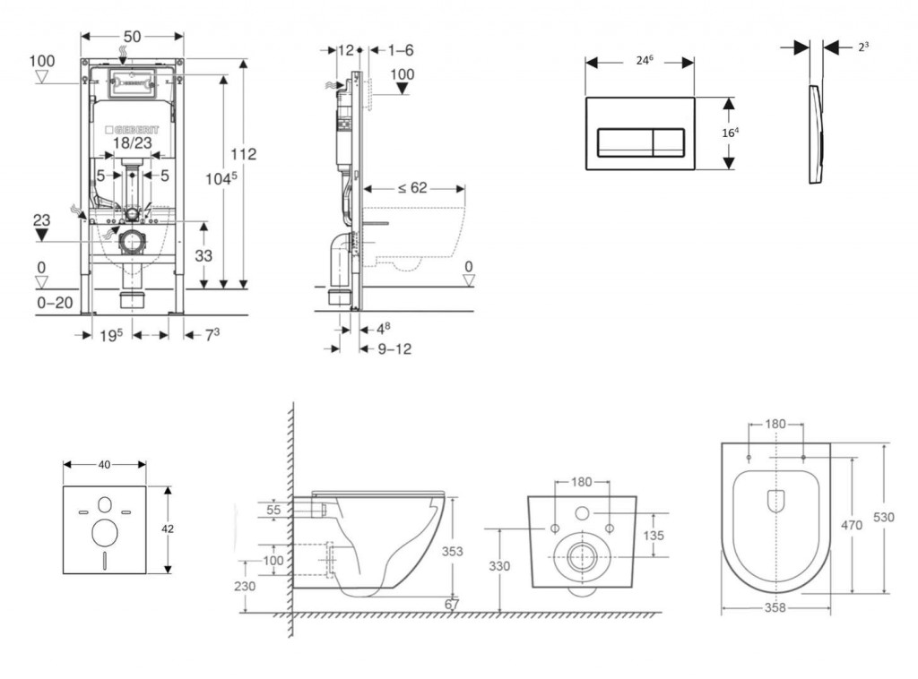 - rám pre nástenné WC s pripojovacími rozmermi podľa EN 33 a presahom do 62 cm