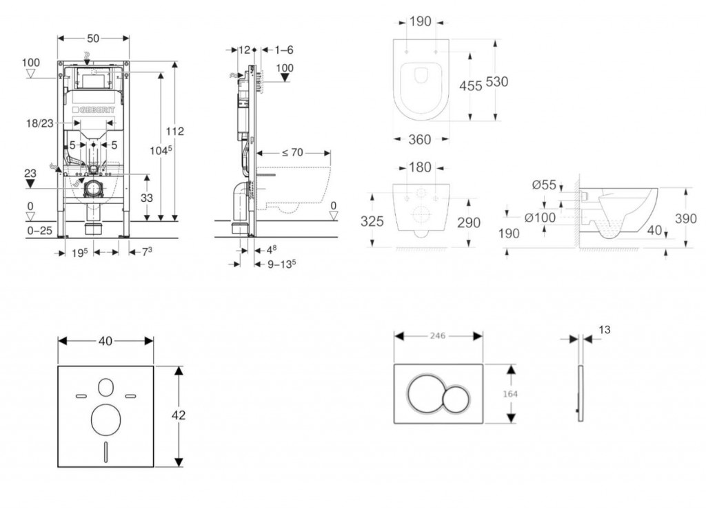 - na montáž do systémových stien Geberit Duofix čiastočne vysokých alebo vysokých na výšku miestnosti