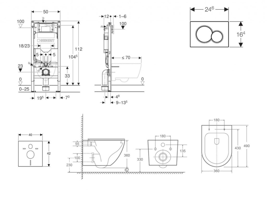 - rám pre nástenné WC s pripojovacími rozmermi podľa EN 33 a presahom do 62 cm