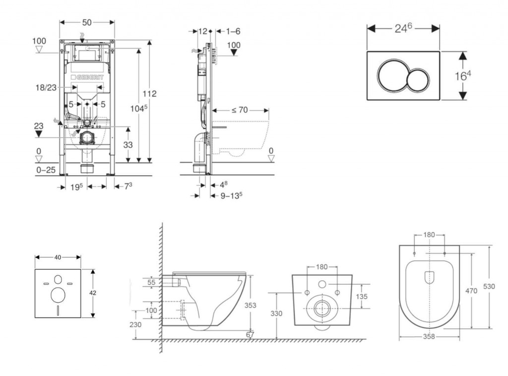 - na montáž do systémových stien Geberit Duofix čiastočne vysokých alebo vysokých na výšku miestnosti