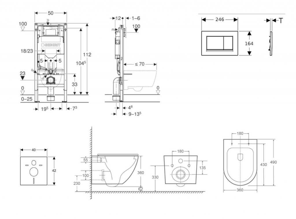 - na montáž do systémových stien Geberit Duofix čiastočne vysokých alebo vysokých na výšku miestnosti