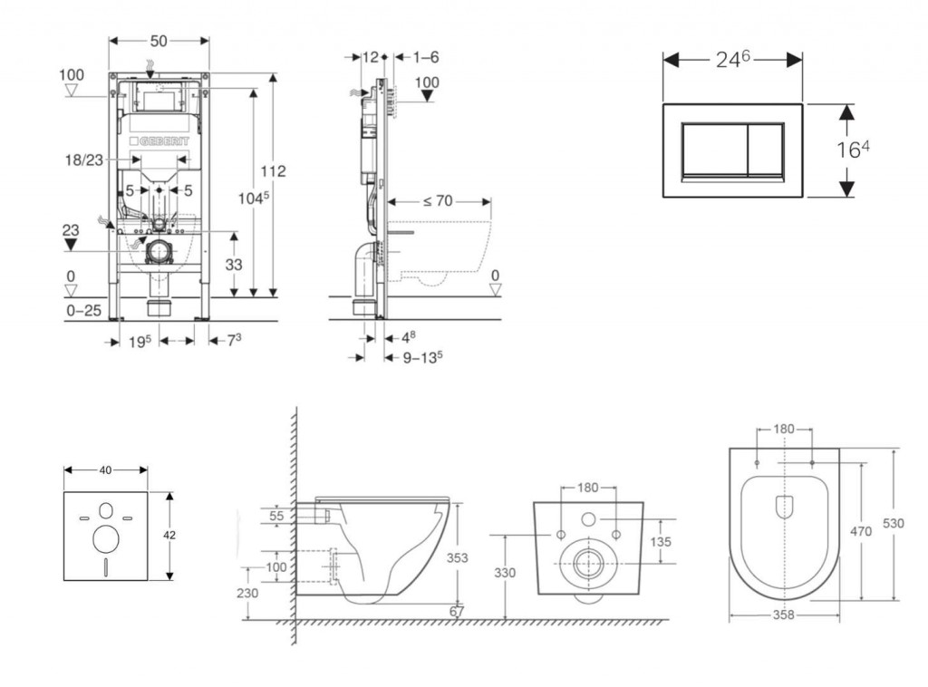- na montáž do systémových stien Geberit Duofix čiastočne vysokých alebo vysokých na výšku miestnosti