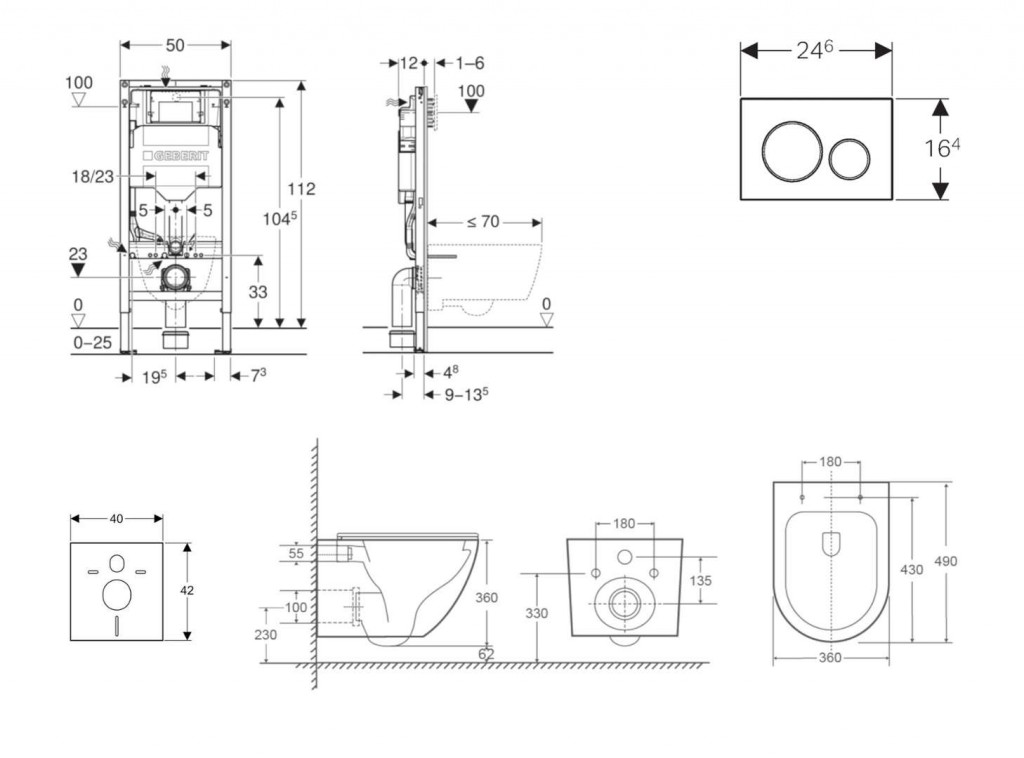 - na montáž do systémových stien Geberit Duofix čiastočne vysokých alebo vysokých na výšku miestnosti
