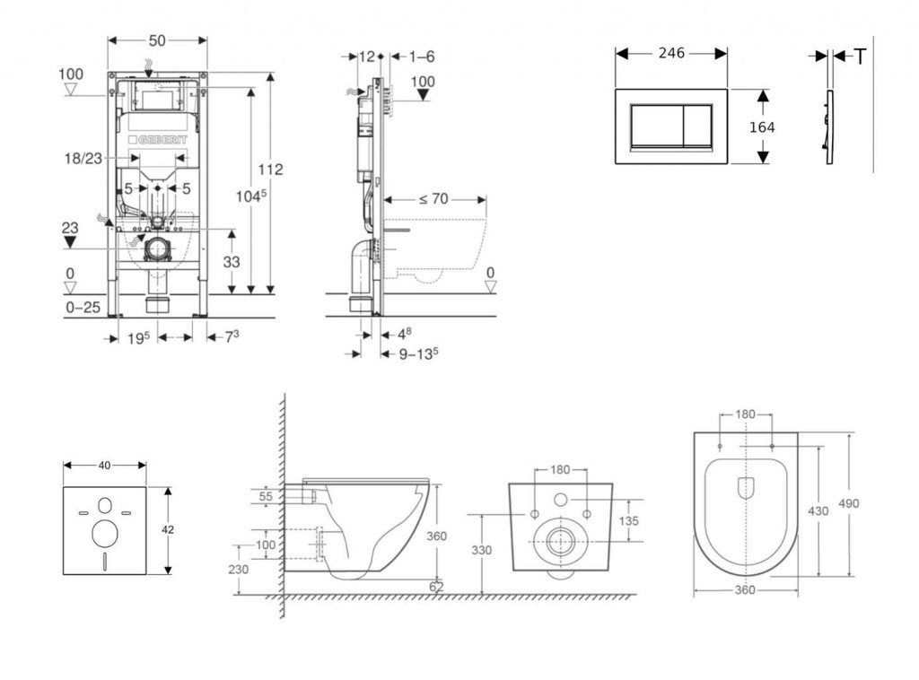 - na montáž do systémových stien Geberit Duofix čiastočne vysokých alebo vysokých na výšku miestnosti
