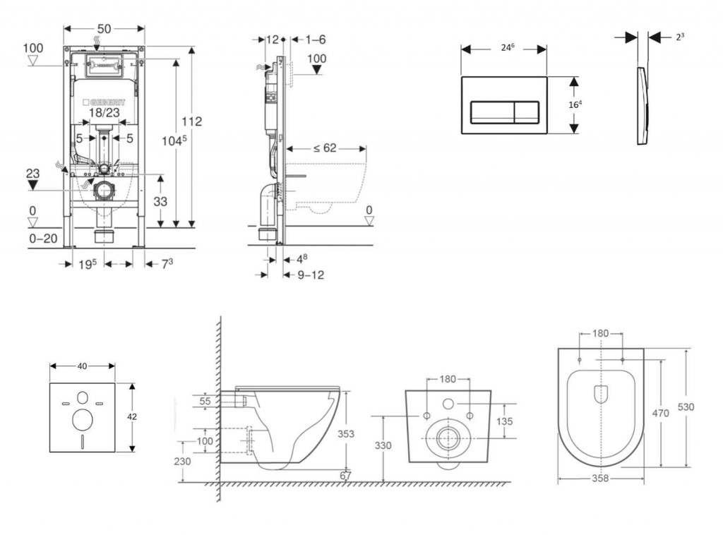 - rám pre nástenné WC s pripojovacími rozmermi podľa EN 33 a presahom do 62 cm