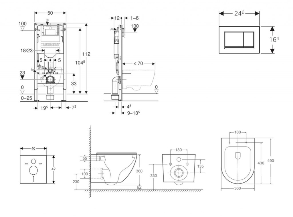 - na montáž do systémových stien Geberit Duofix čiastočne vysokých alebo vysokých na výšku miestnosti