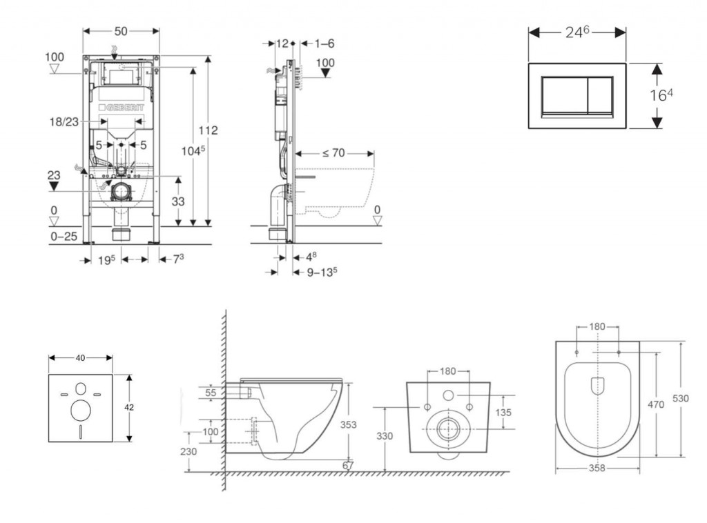- pre závesné WC s pripojovacími rozmermi podľa EN 33 a presahom do 70 cm