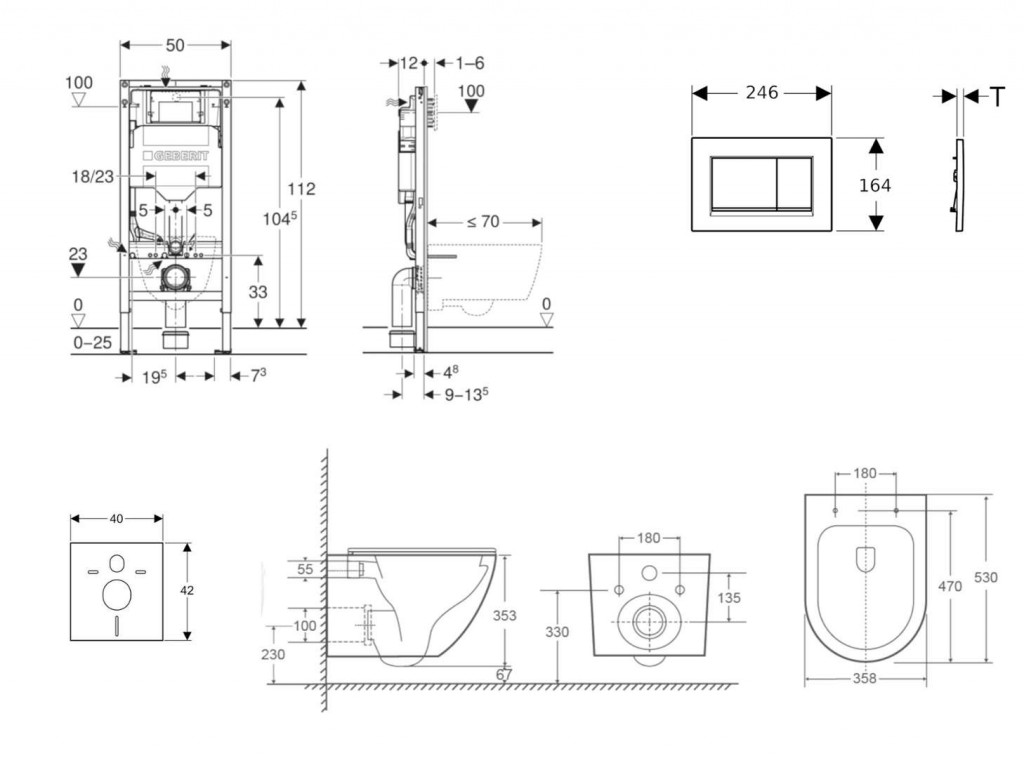 - pre závesné WC s pripojovacími rozmermi podľa EN 33 a presahom do 70 cm