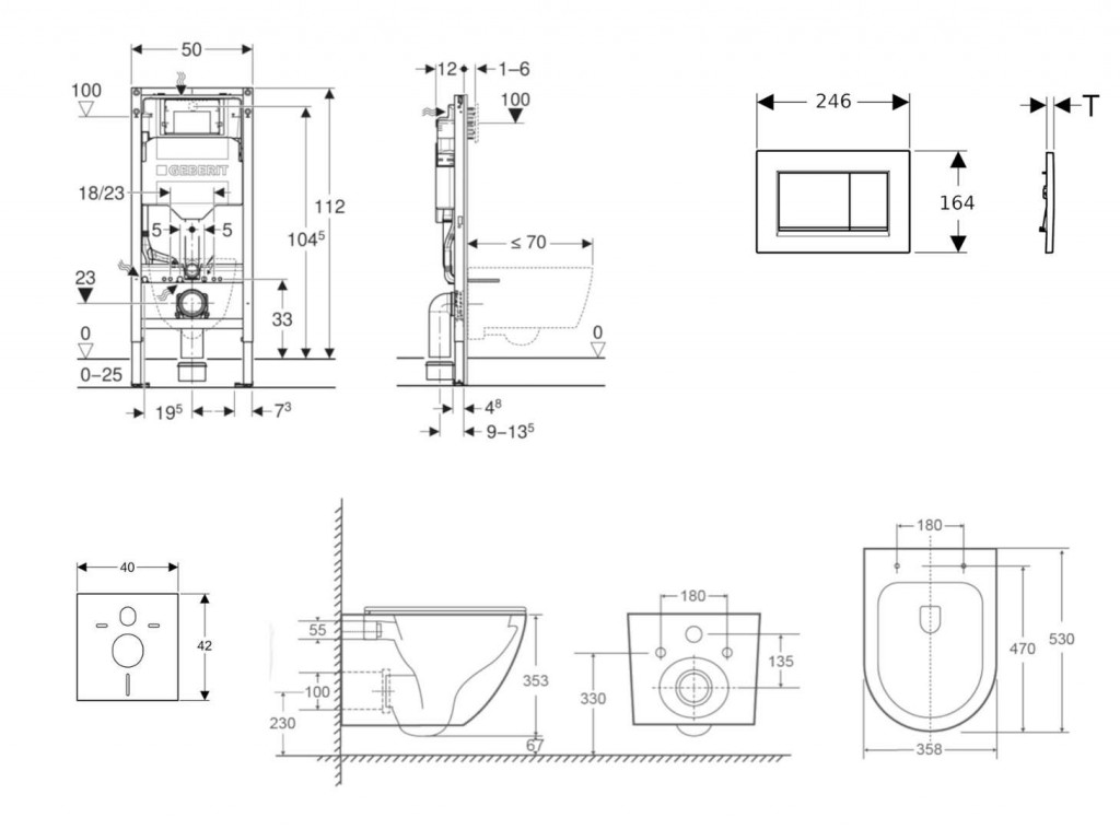 - na montáž do systémových stien Geberit Duofix čiastočne vysokých alebo vysokých na výšku miestnosti