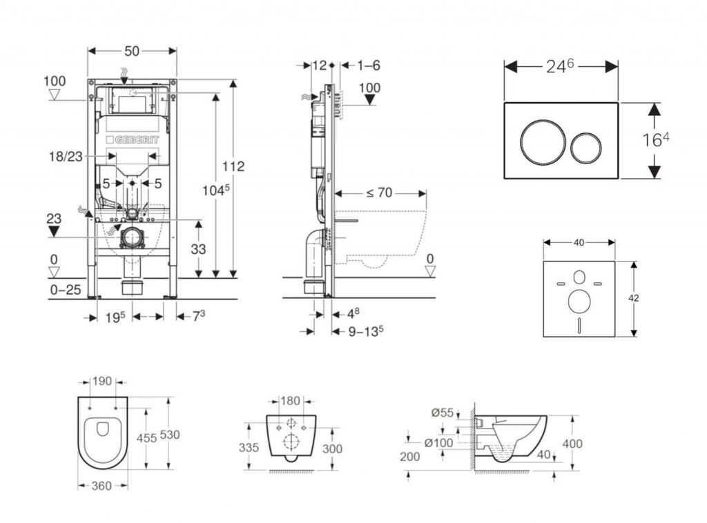 - pre závesné WC s pripojovacími rozmermi podľa EN 33 a presahom do 70 cm