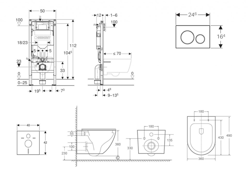 - na montáž do systémových stien Geberit Duofix čiastočne vysokých alebo vysokých na výšku miestnosti