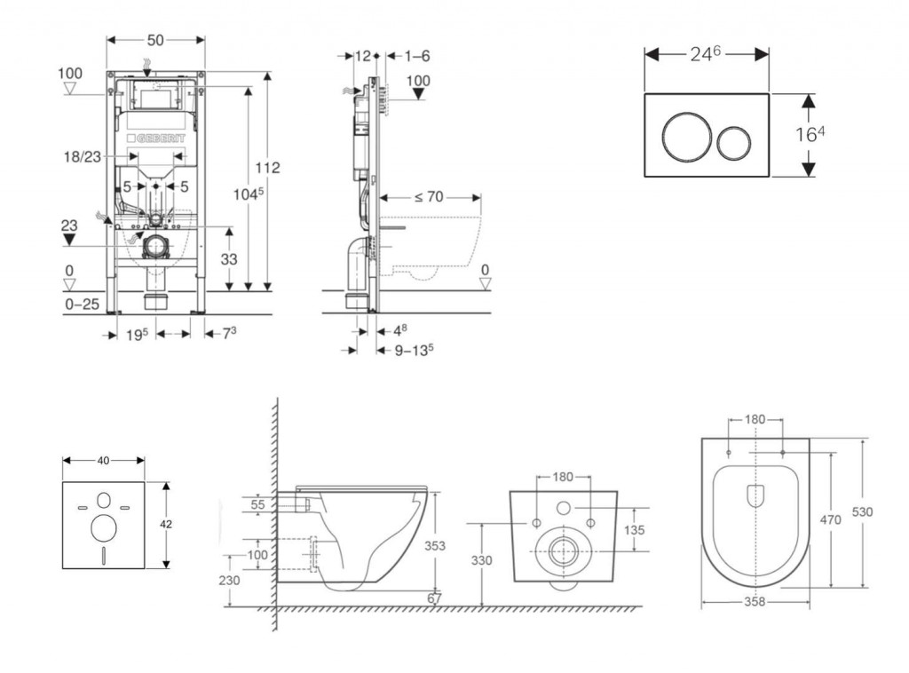 - pre závesné WC s pripojovacími rozmermi podľa EN 33 a presahom do 70 cm