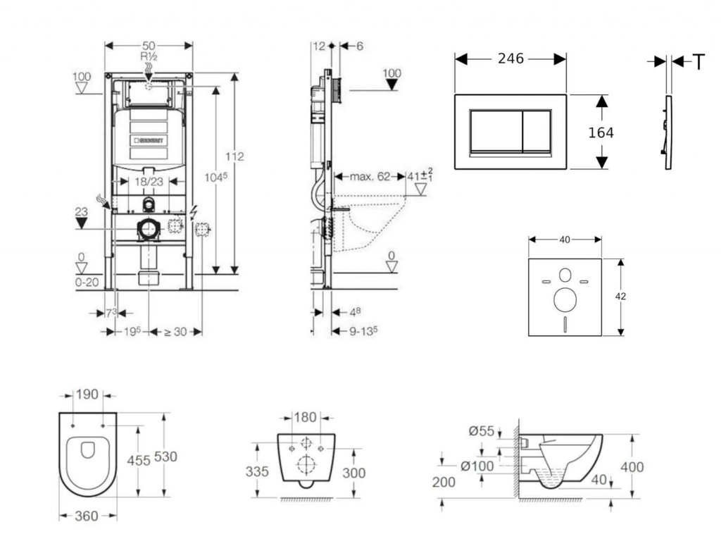 - pre závesné WC s pripojovacími rozmermi podľa EN 33:2011