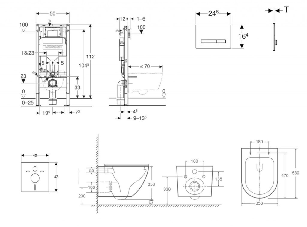 - na montáž do systémových stien Geberit Duofix čiastočne vysokých alebo vysokých na výšku miestnosti
