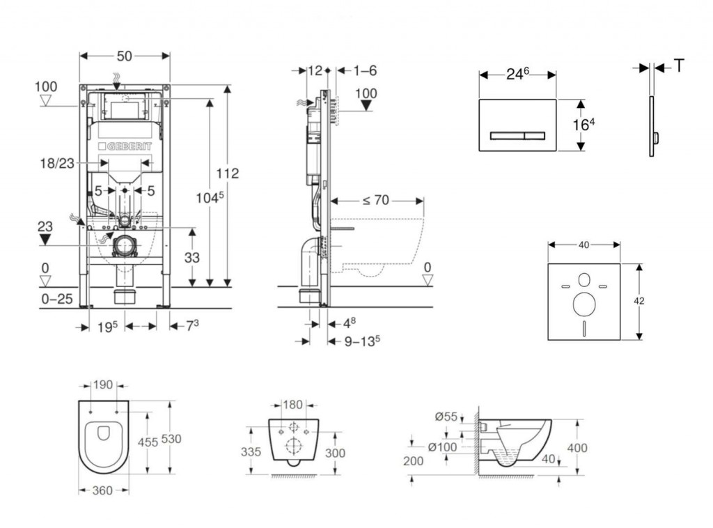 - pre závesné WC s pripojovacími rozmermi podľa EN 33 a presahom do 70 cm