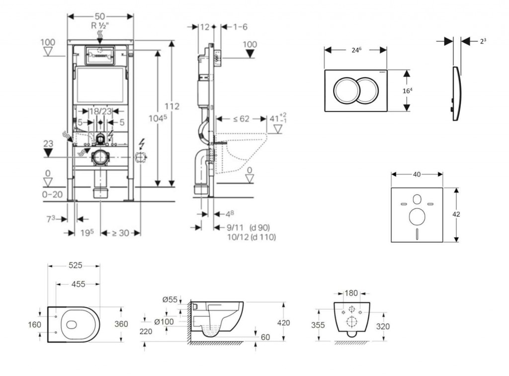 - pre montáž závesného WC so vzdialenosťou upevnenia 18 cm alebo 23 cm