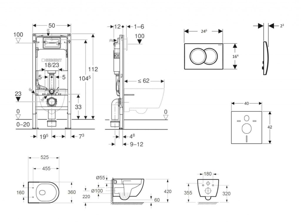 - rám pre nástenné WC s pripojovacími rozmermi podľa EN 33 a presahom do 62 cm