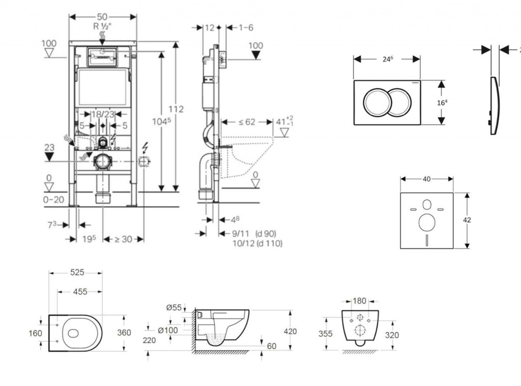 - pre montáž závesného WC so vzdialenosťou upevnenia 18 cm alebo 23 cm