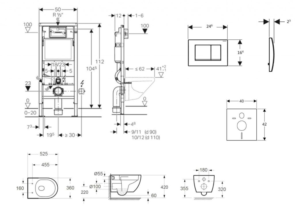 - pre montáž závesného WC so vzdialenosťou upevnenia 18 cm alebo 23 cm