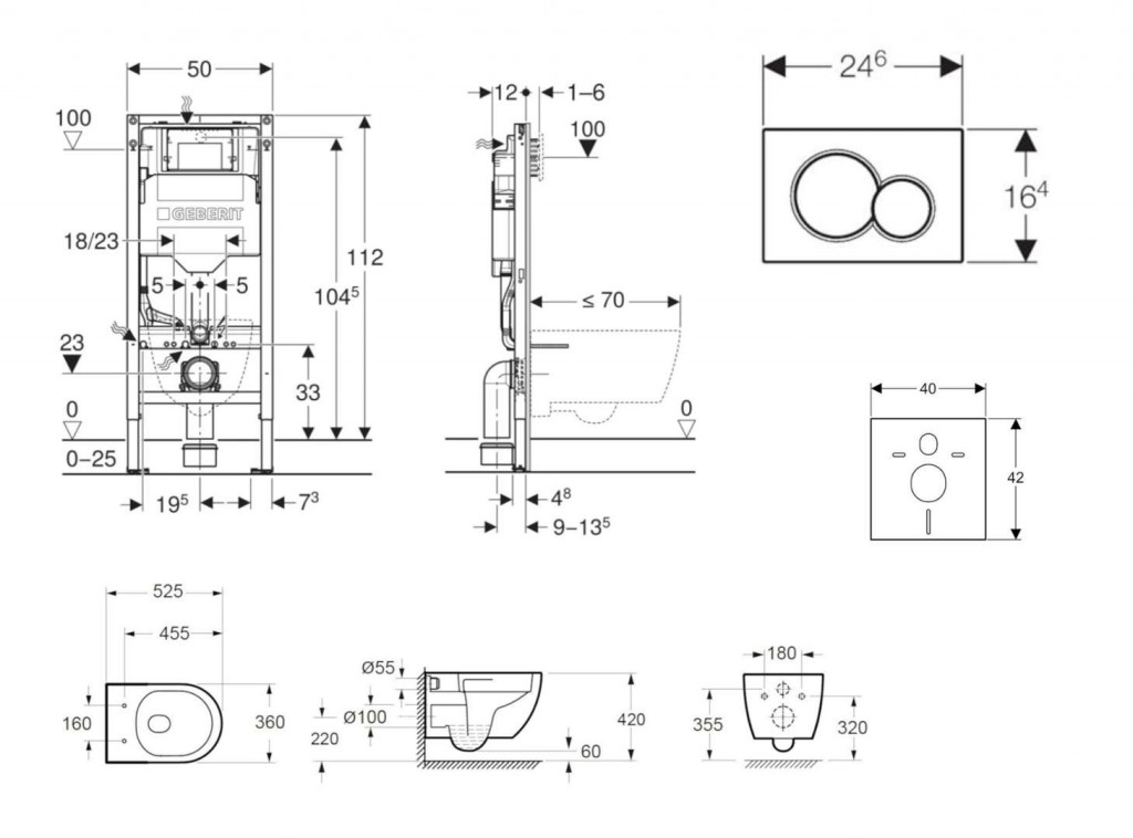 - pre závesné WC s pripojovacími rozmermi podľa EN 33 a presahom do 70 cm