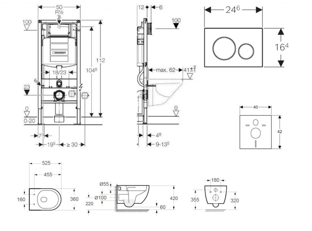 - na montáž do systémových stien Geberit Duofix čiastočne vysokých alebo vysokých na výšku miestnosti