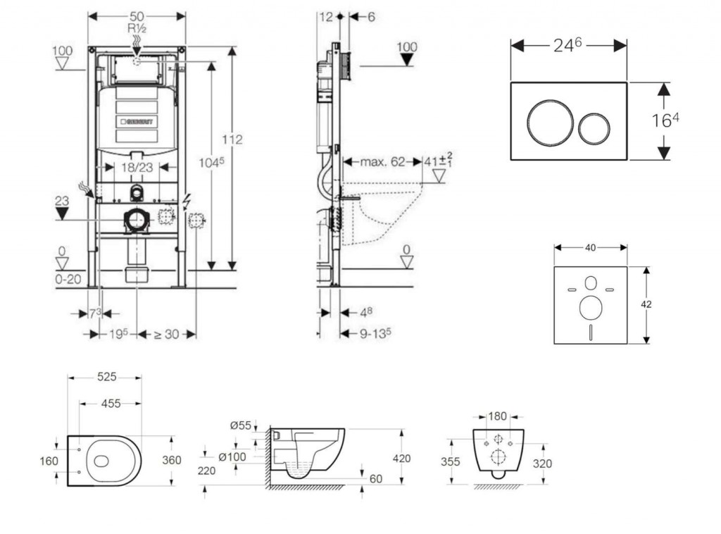 - na montáž do systémových stien Geberit Duofix čiastočne vysokých alebo vysokých na výšku miestnosti