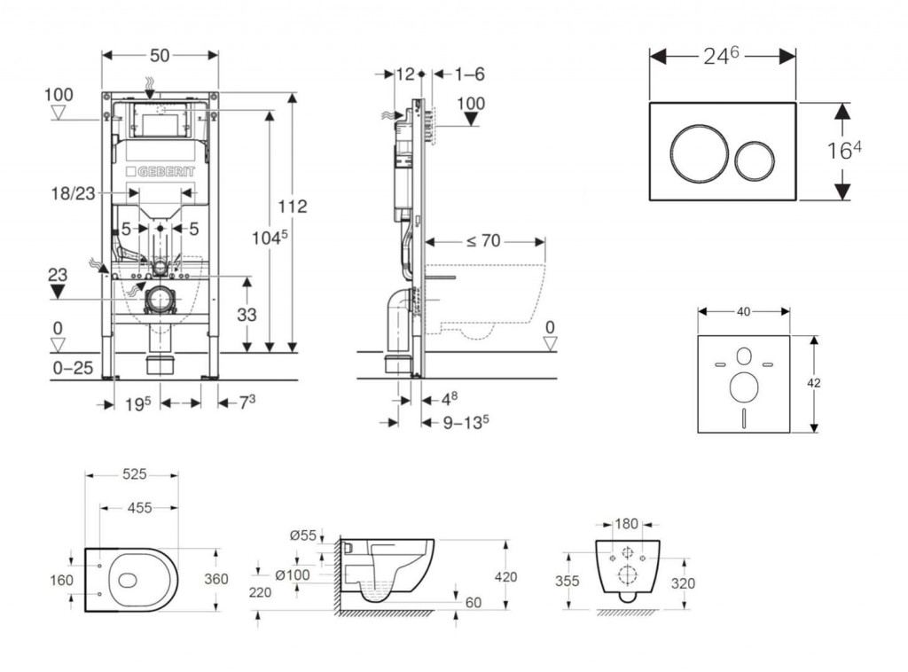 - pre závesné WC s pripojovacími rozmermi podľa EN 33 a presahom do 70 cm
